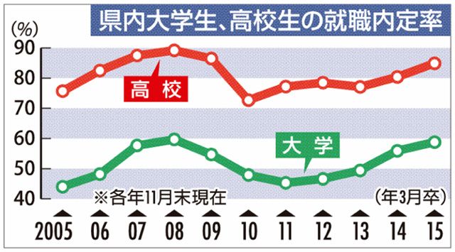 大学58%、高校84%に上昇/県内11月末の新卒内定率/リーマン前水準近づく