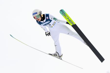 W杯ジャンプ女子第32戦での丸山希の飛躍=ビケルスン(共同)