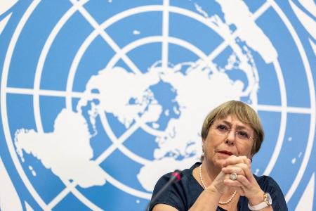 バチェレ氏=2022年8月、スイス・ジュネーブ(ロイター=共同)