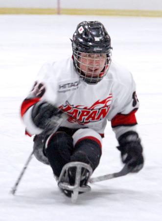 パラアイスホッケー日本代表候補の強化合宿でプレーする熊谷=長野県岡谷市