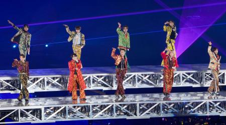 ライブでパフォーマンスをする「Snow Man」のメンバー=東京都文京区の東京ドーム