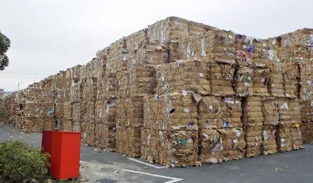 製紙会社の段ボール用古紙置き場