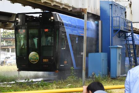 モノレール祭りでは、車体の洗浄を乗車したまま体験するイベントが人気だった