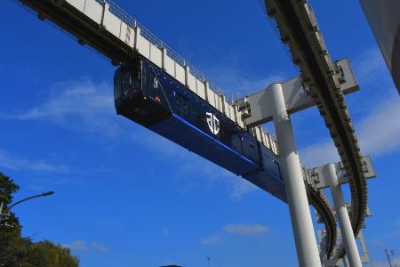 森の上を滑空するように走る千葉モノレール