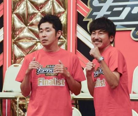昨年準優勝だった「ロングコートダディ」の堂前透(左)と兎=東京都港区