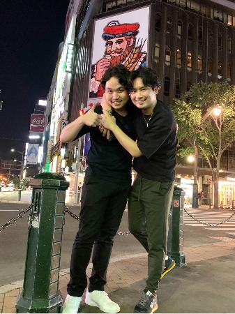 札幌の街角で三浦文彰さん(右)と筆者。「人間的にも魅力にあふれていて、三浦さんは私にとって大切な親友です!」(筆者提供)