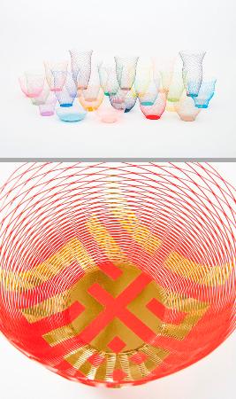 福永紙工の代表作“空気の器”(上)、野老朝雄さんによる“空気の器”(提供写真)