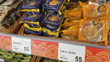 台北市内のスーパーマーケットで、中秋節前に売られていた「蛋黄酥」=9月25日