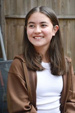 選挙権年齢の引き下げについて思いを語るキミコ・フラナガンさん=8月、ロンドン(共同)