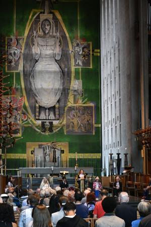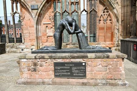 英中部コベントリーの大聖堂跡にある「和解」の像=8月(共同)