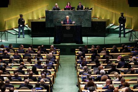 23日、国連総会で演説したトランプ米大統領=ニューヨーク(ロイター=共同)