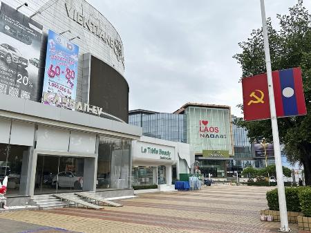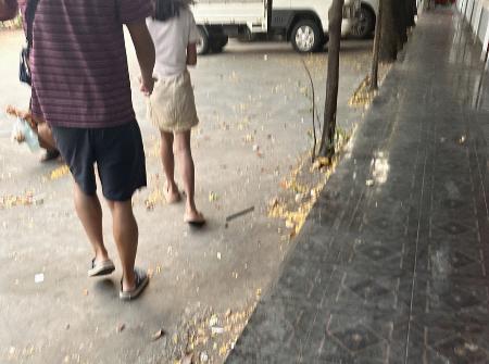 買春客(左)と一緒に部屋から出た少女=ラオス・ビエンチャン