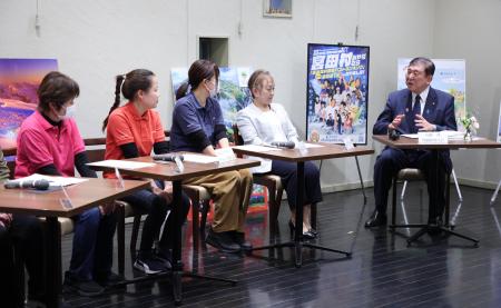「オヒサマの森」で行われた車座対話で発言する石破首相=3月、長野県宮田村