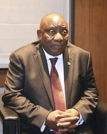インタビューに応じる南アフリカのラマポーザ大統領