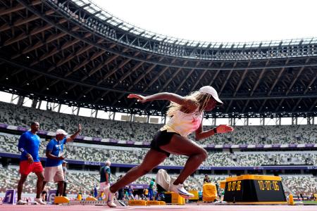 東京・国立競技場で調整する海外選手=12日