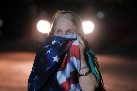 ブラジルのボルソナロ前大統領の有罪判決を受け、遠くを見つめる支持者=11日、ブラジリア(ロイター=共同)