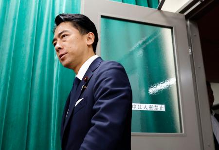 11日、記者団の取材に応じ、自民党総裁選に立候補する意向を表明した小林元経済安保相=国会