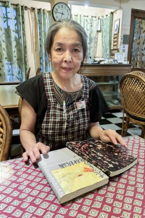 日本料理店「ルンタレストラン」で取材に応じる山崎直子さん=7月、インド・ダラムサラ(共同)