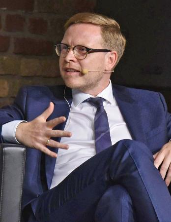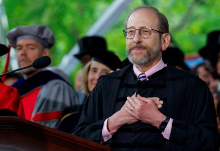 5月29日、米ハーバード大の卒業式で、学生から拍手を受けるガーバー学長=ボストン郊外(ロイター=共同)