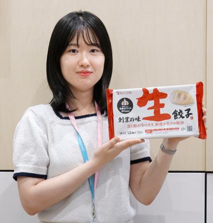 「創業の味 生餃子」を開発した餃子計画の李成熙さん。「お客さんの反応がうれしい」と話す=東京都港区