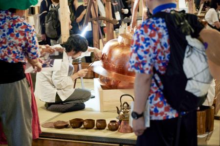 大阪・関西万博会場内の展示会で中川政七商店が用意した抹茶体験の様子