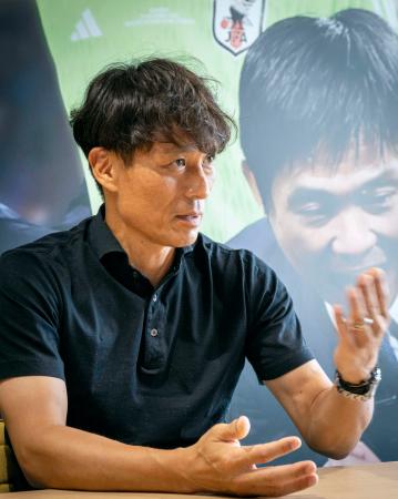 インタビューに応じる日本サッカー協会の宮本恒靖会長