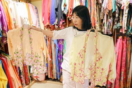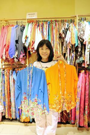 貸し出し用の伝統衣装ケバヤを見せるリンディさん=2025年7月、マレーシア・マラッカ(共同)