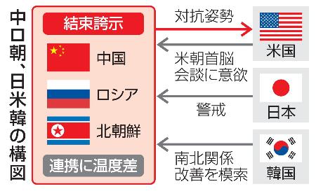 抗日戦争勝利80年記念行事に出席した中国の習近平国家主席(中央)とロシアのプーチン大統領(同左)、北朝鮮の金正恩朝鮮労働党総書記(同右)ら=3日、北京(ロイター=共同)