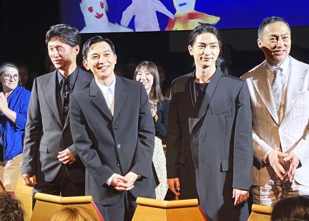 カンヌ国際映画祭の「監督週間」で「国宝」上映後、観客の拍手に応える(手前左から)李相日監督、吉沢亮さん、横浜流星さん、渡辺謙さん=5月、フランス・カンヌ(共同)
