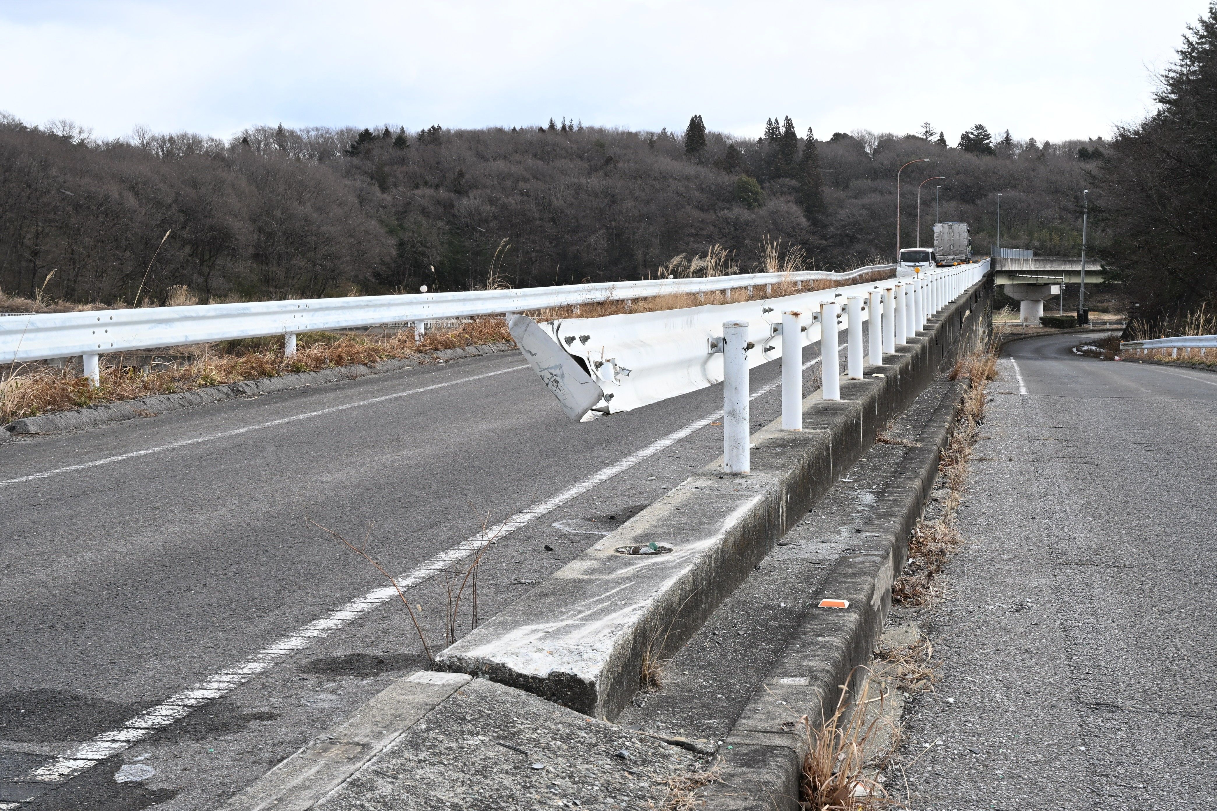 小林容疑者が衝突したガードレール=25日午前、那須町高久甲