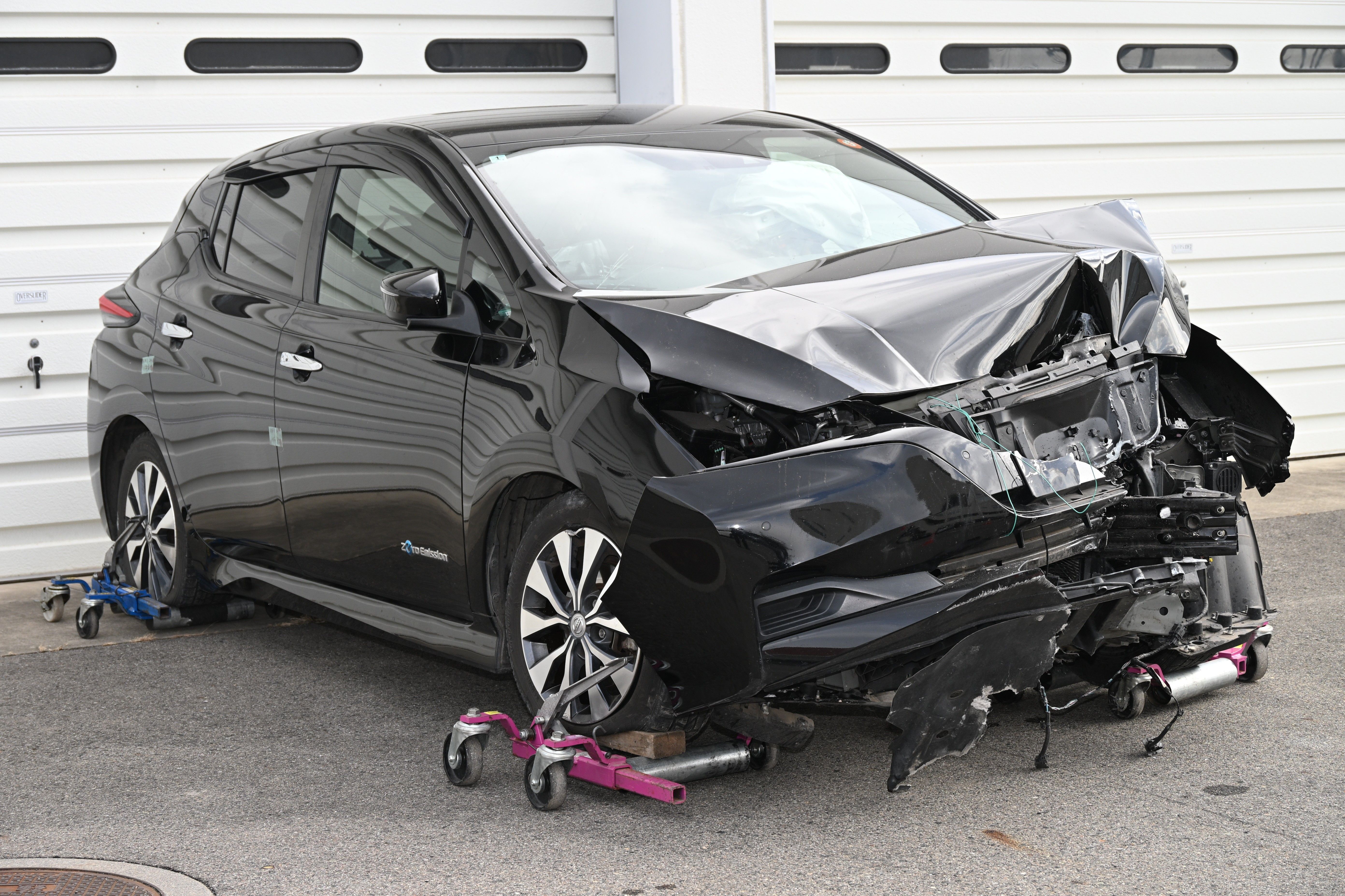 小林容疑者が運転していた事故車両=25日午前、那須塩原署