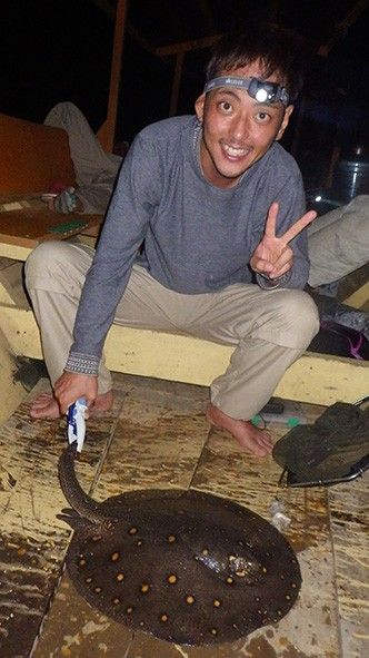アマゾンでモトロを捕獲した目野さん(2012年)