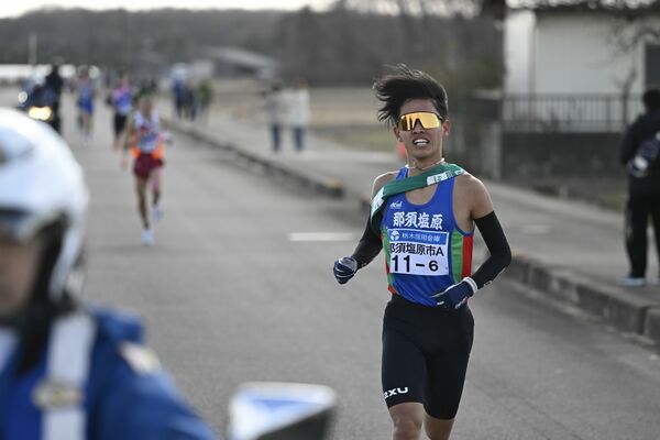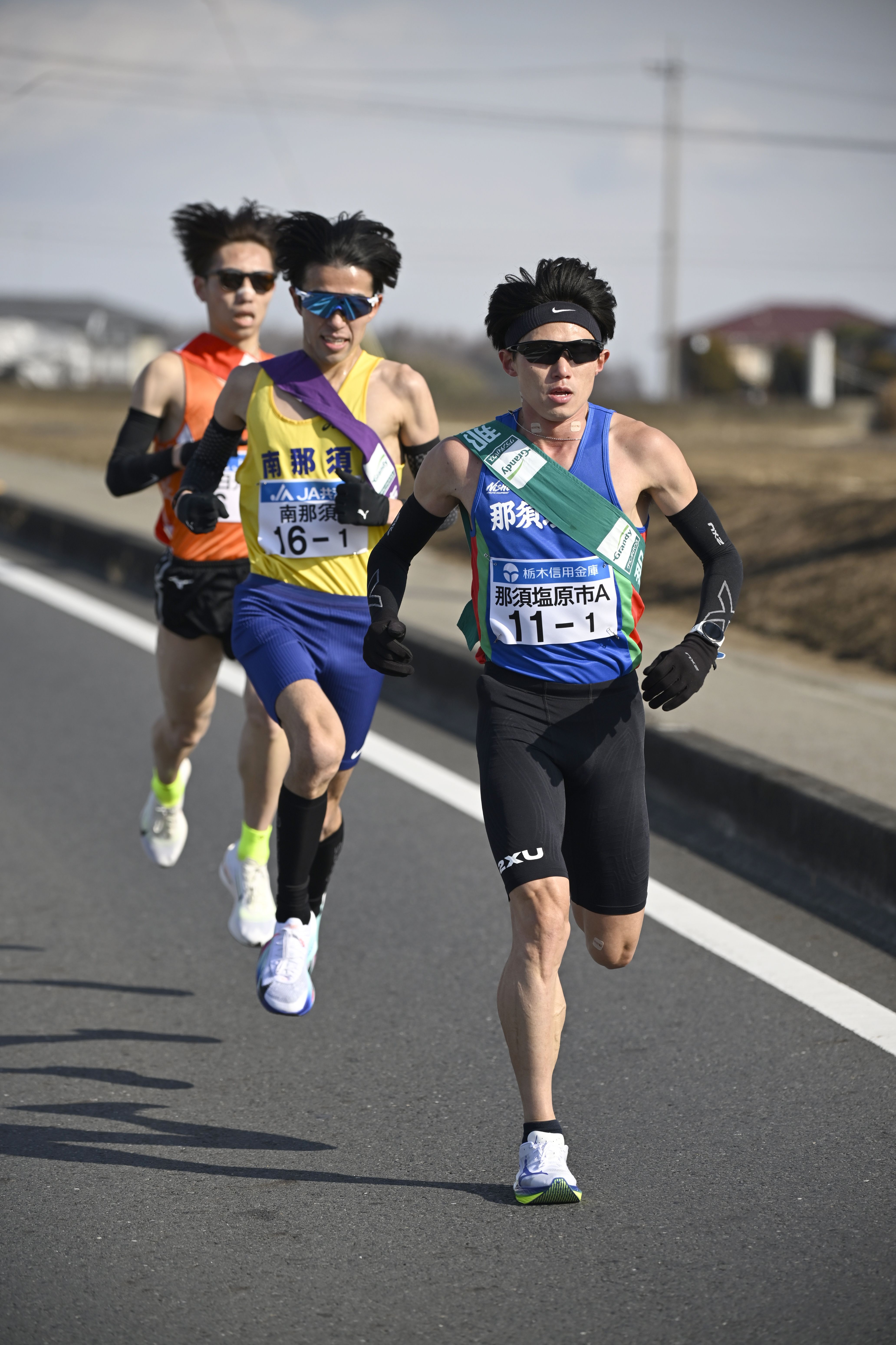 那須塩原市A1区の高久(前)が中継所直前の下り坂でリードを広げにかかる