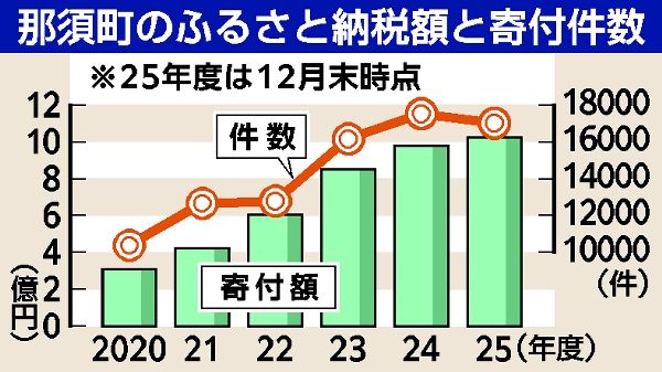 那須町のふるさと納税、初の10億円超 宿泊・レジャーがけん引、7年連続最高