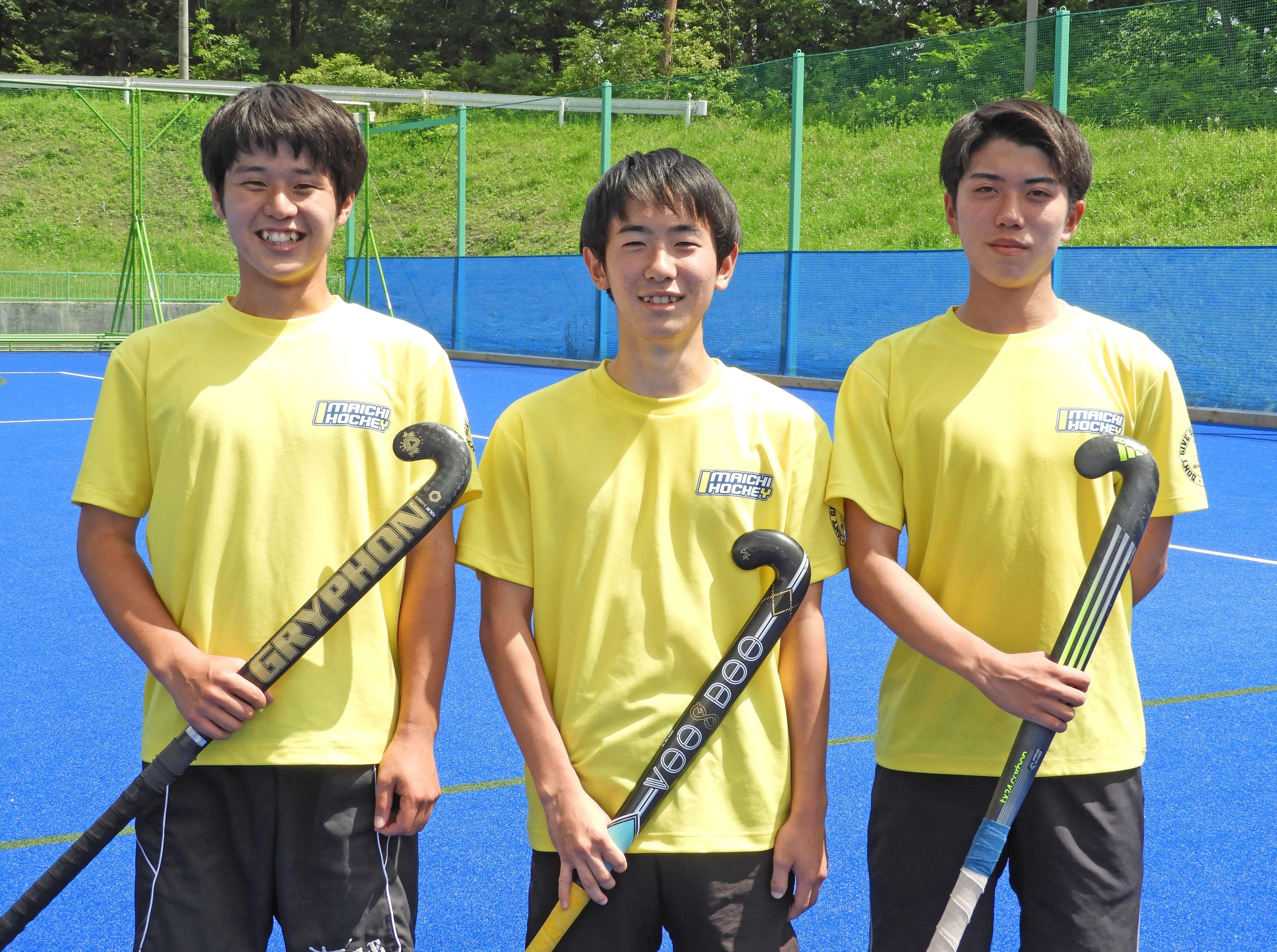 フィールドホッケーの魅力を語ってもらった現在3年生、左から現キャプテンの北村 愛翔(まなと)さん、副キャプテンの入江 俊介(しゅんすけ)さん、副キャプテンの福田 凌太(りょうた)さん