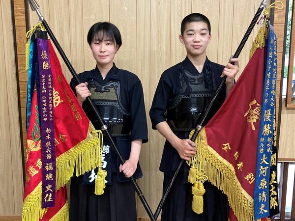 2019年12月の「全国道場少年選手権大会」小学生女子の部で優勝した福地 史佳(ふみか)さん(当時6年生)と小学生男子の部で優勝した大河原 靖太(せいた)さん(当時5年生)