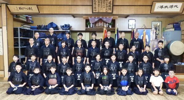 2019年7月の「全国道場少年剣道大会」の小学生団体の部で準優勝をしたメンバー。左から大河原さん、立木 伶(れい)さん、福地さん、藤田 悠叶(はやと)さん