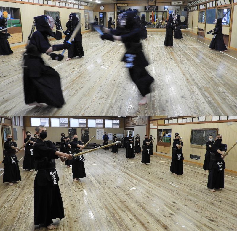 左:「リーベ栃木」と定期的に練習試合を行い、力を付けています。右:選手としても、今市高校で日本一に輝いている木村顧問(真ん中)