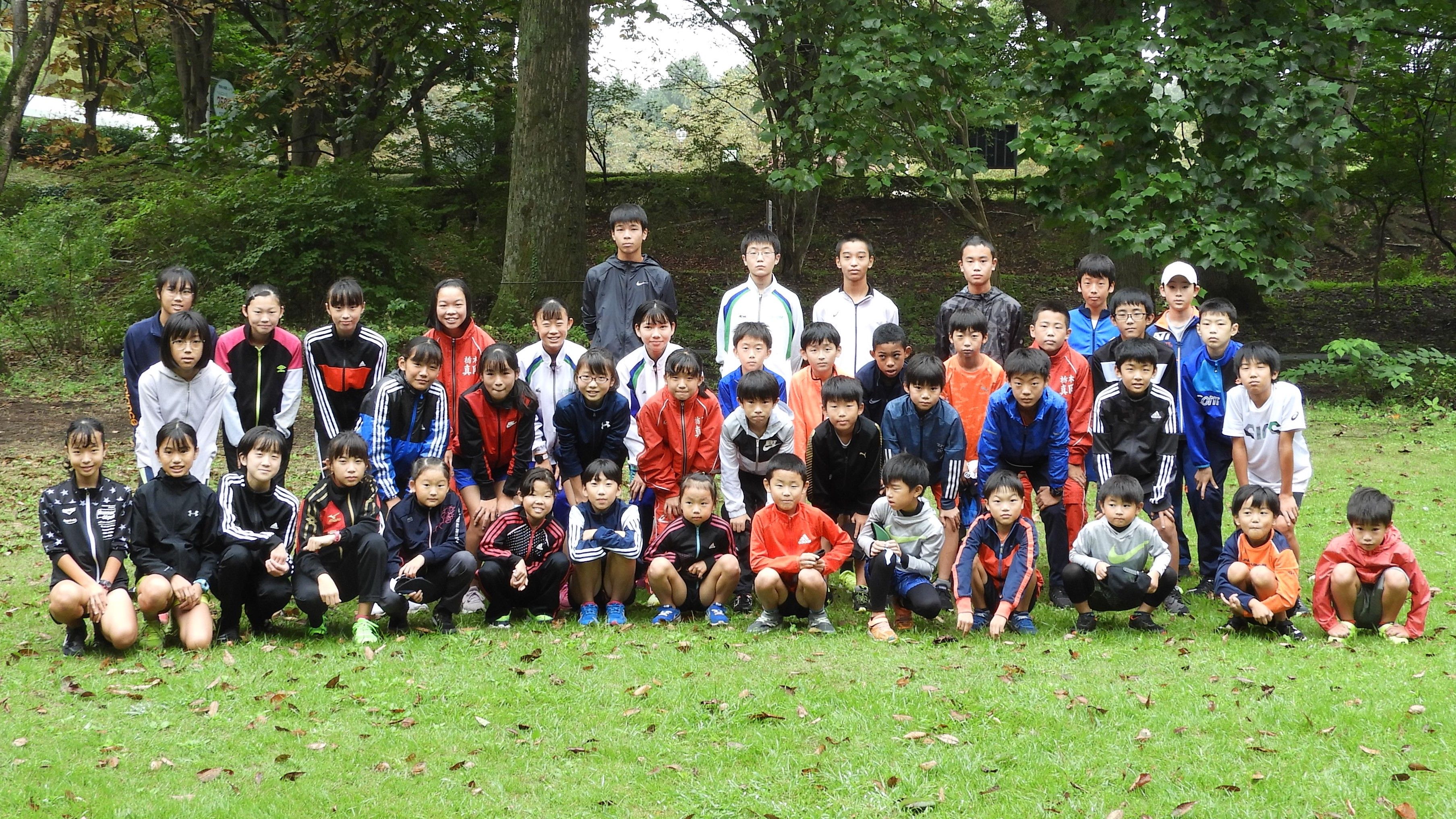 普段はトラックでの練習ですが、取材時は真岡井頭公園内で、年代に分かれてクロスカントリーを走りました。押久保監督(左端)が見守ります