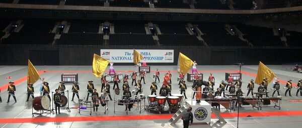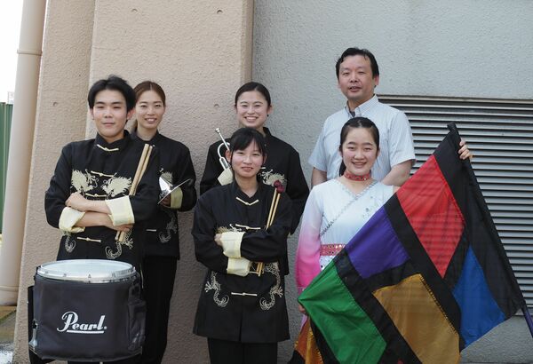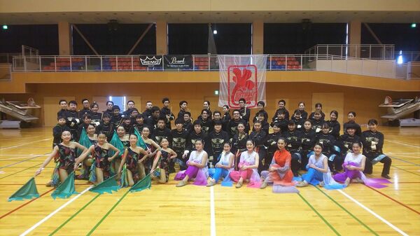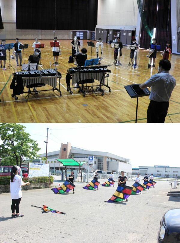 (上の写真)練習拠点である鹿沼市体育館で、ようやくメンバーが集まって練習できるようになりました。(下の写真)カラーガードの練習風景。リーダーの柿沼さんの指導のもと、振り付けの練習をしています。