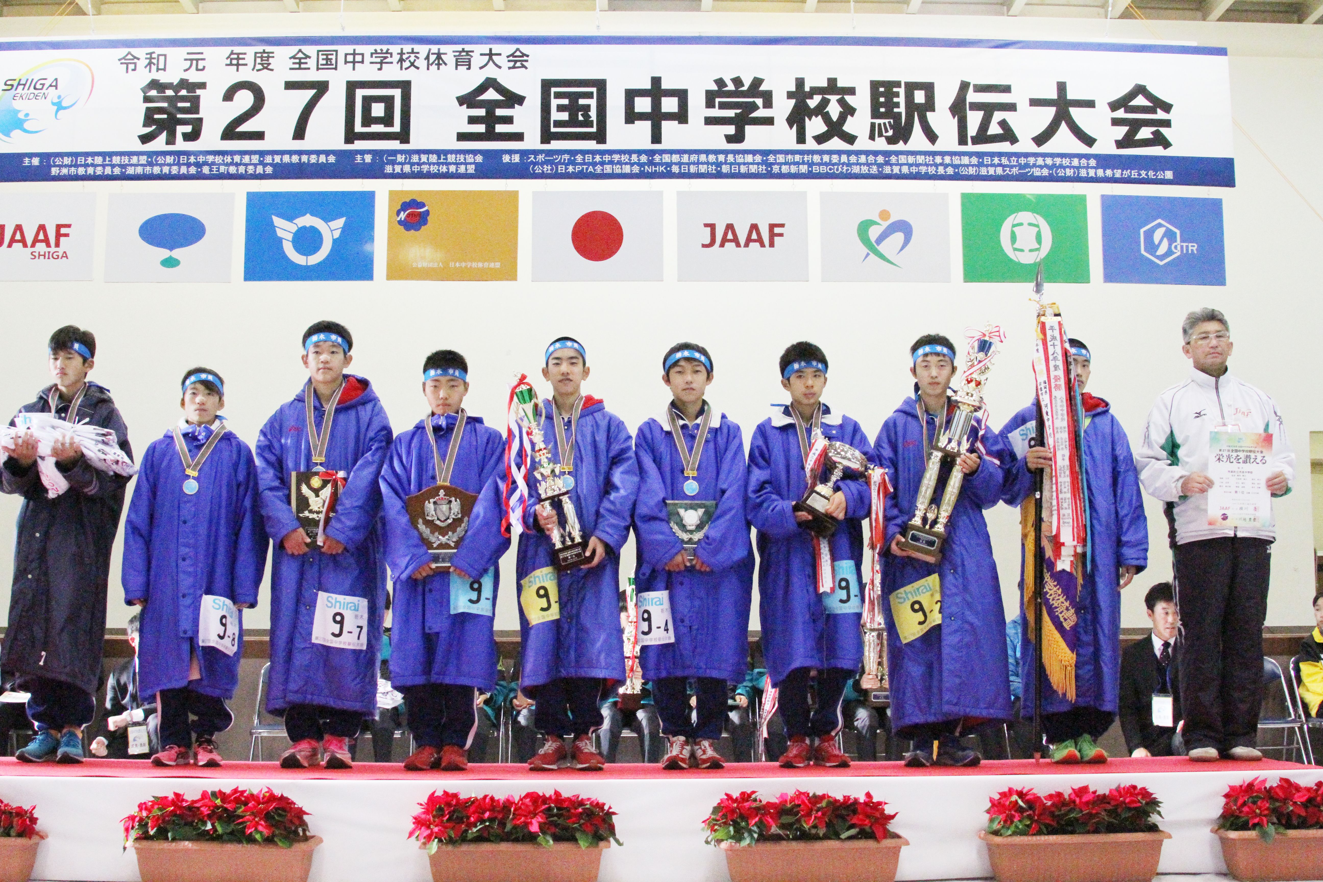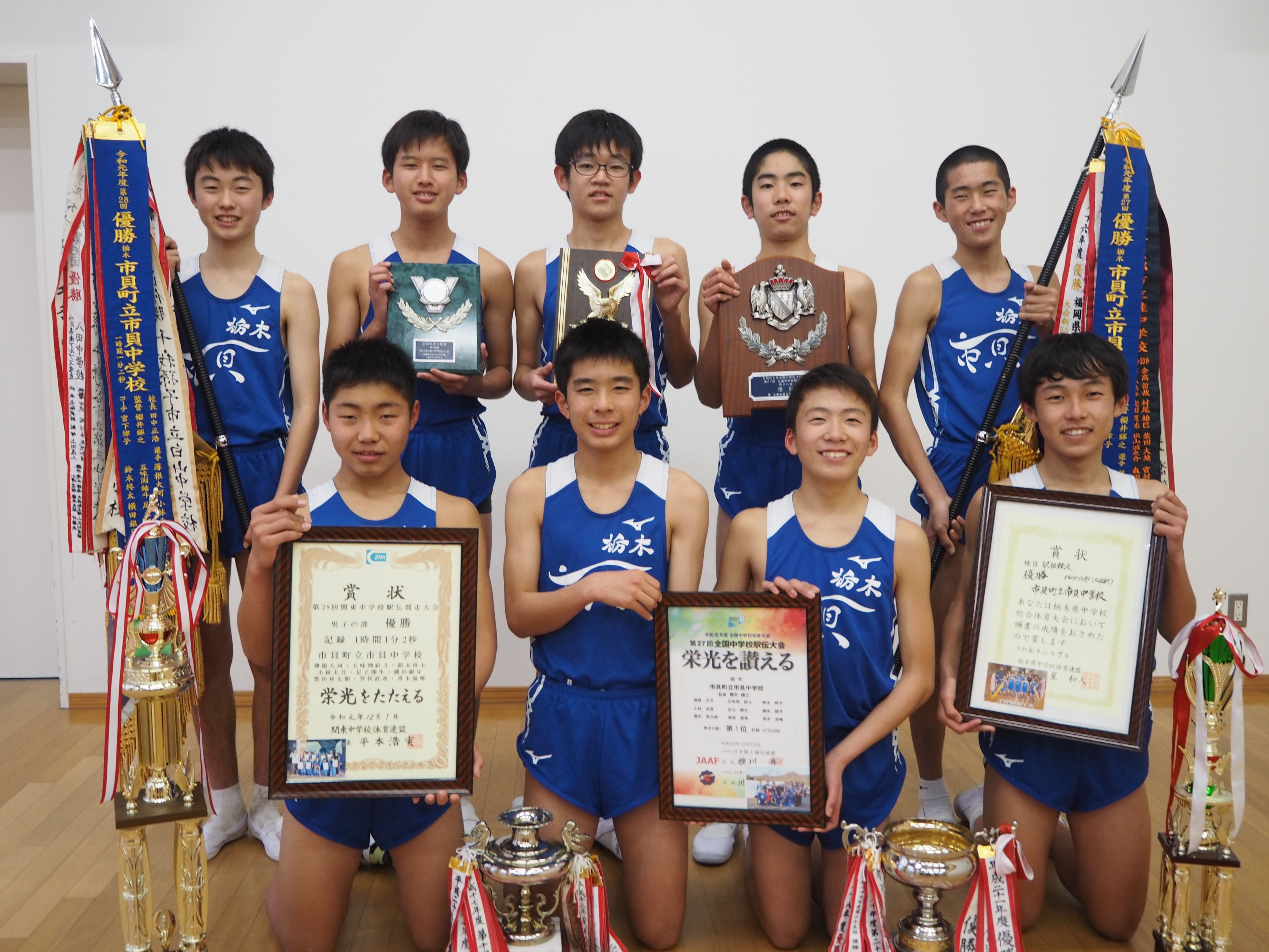 全国中学駅伝大会で全国優勝に輝いた、市貝中学校の特設駅伝部