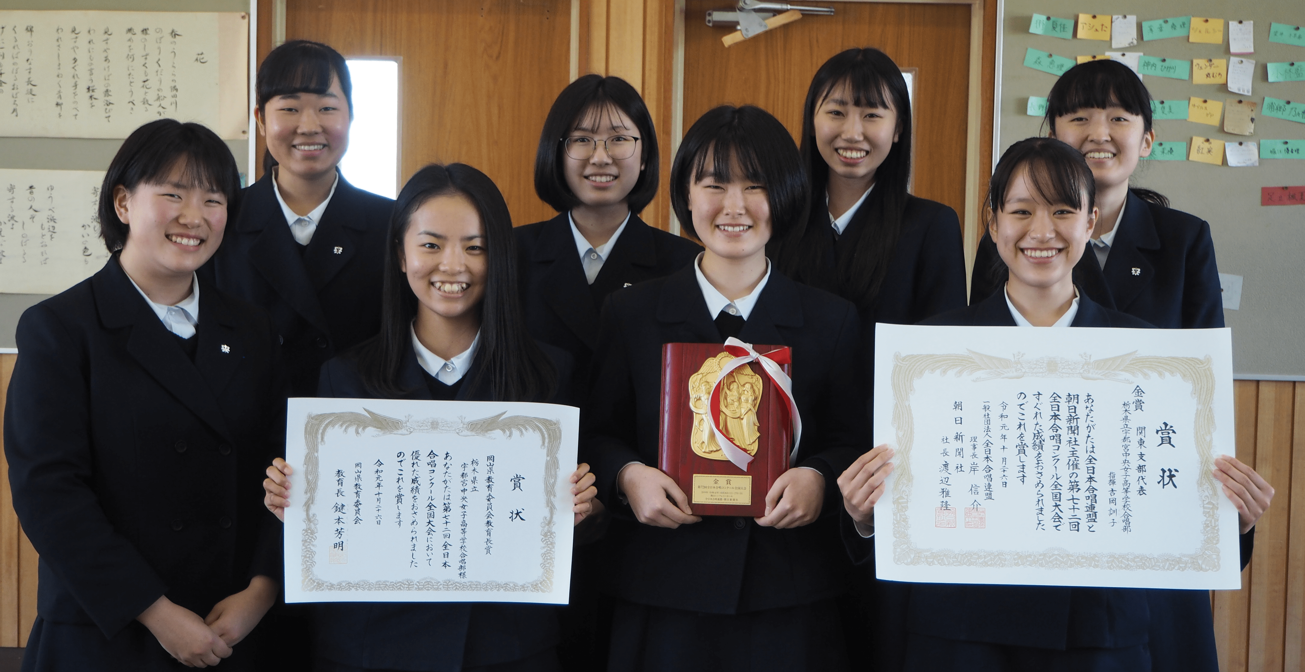 3年連続の金賞、3位にあたる「岡山県教育委員会教育長賞」を受賞 合唱部を支えた3年生(前列左から)吉原有里さん、山中優杏さん、西澤唯衣さん、野澤佑衣さん、 した宇都宮中央女子高校の合唱部