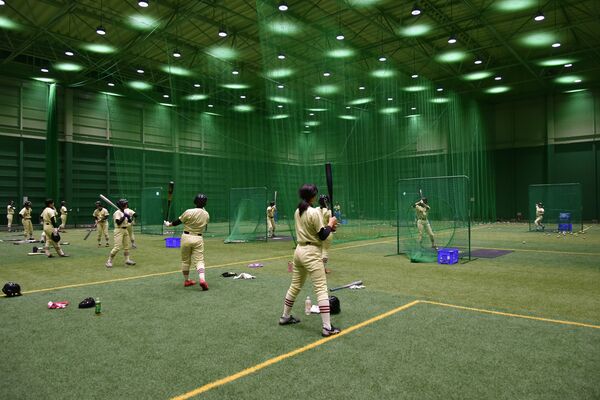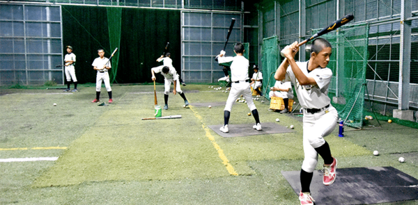 室内練習場という環境で、バッティング練習が主になります。各自の課題を見つけて、バットを振っています。