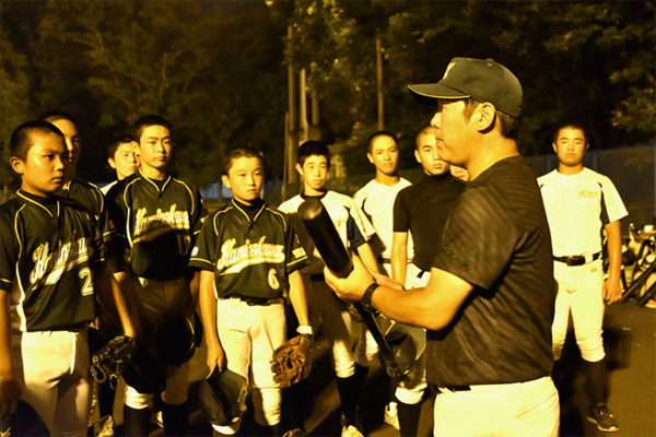 「野球を楽しむこと」を掲げる田代監督(真ん中)、選手一人ひとり とのコミュニケーションを大切にしています。