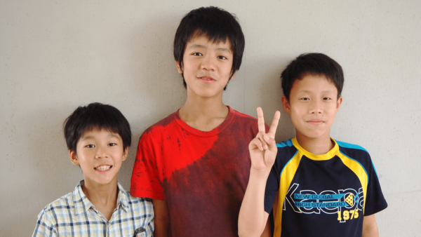 富士見小学校の(右から)大音奏太君、菱田和斗君、髙橋直之君