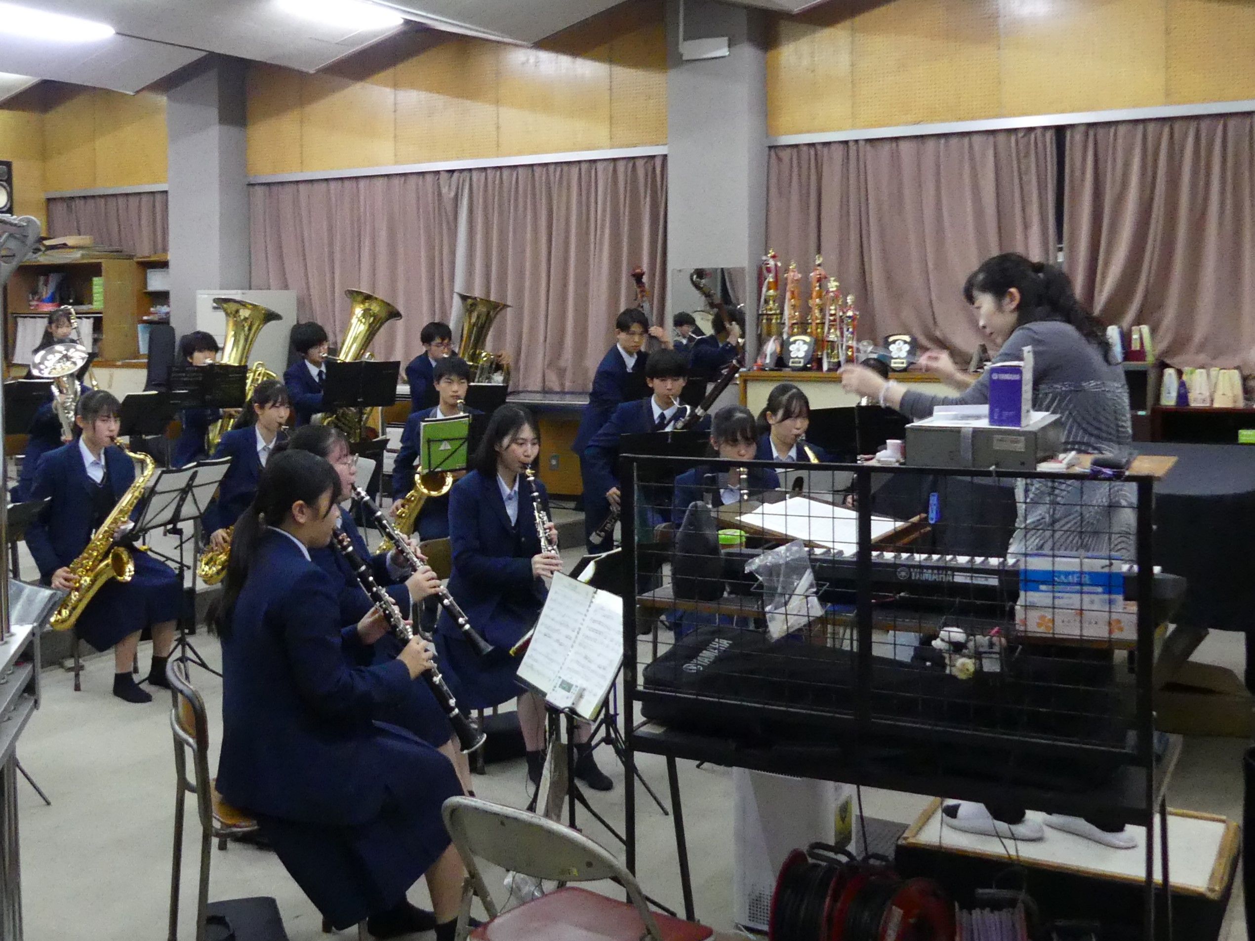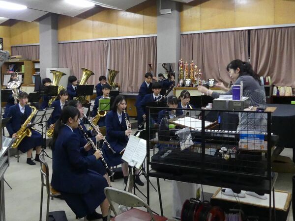 指揮をする顧問の宮田 麻子(みやた・あさこ)教諭(右端)
