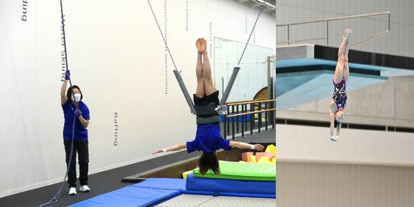 プールでの飛び込み練習のほか、屋内でのトレーニングにも励みます