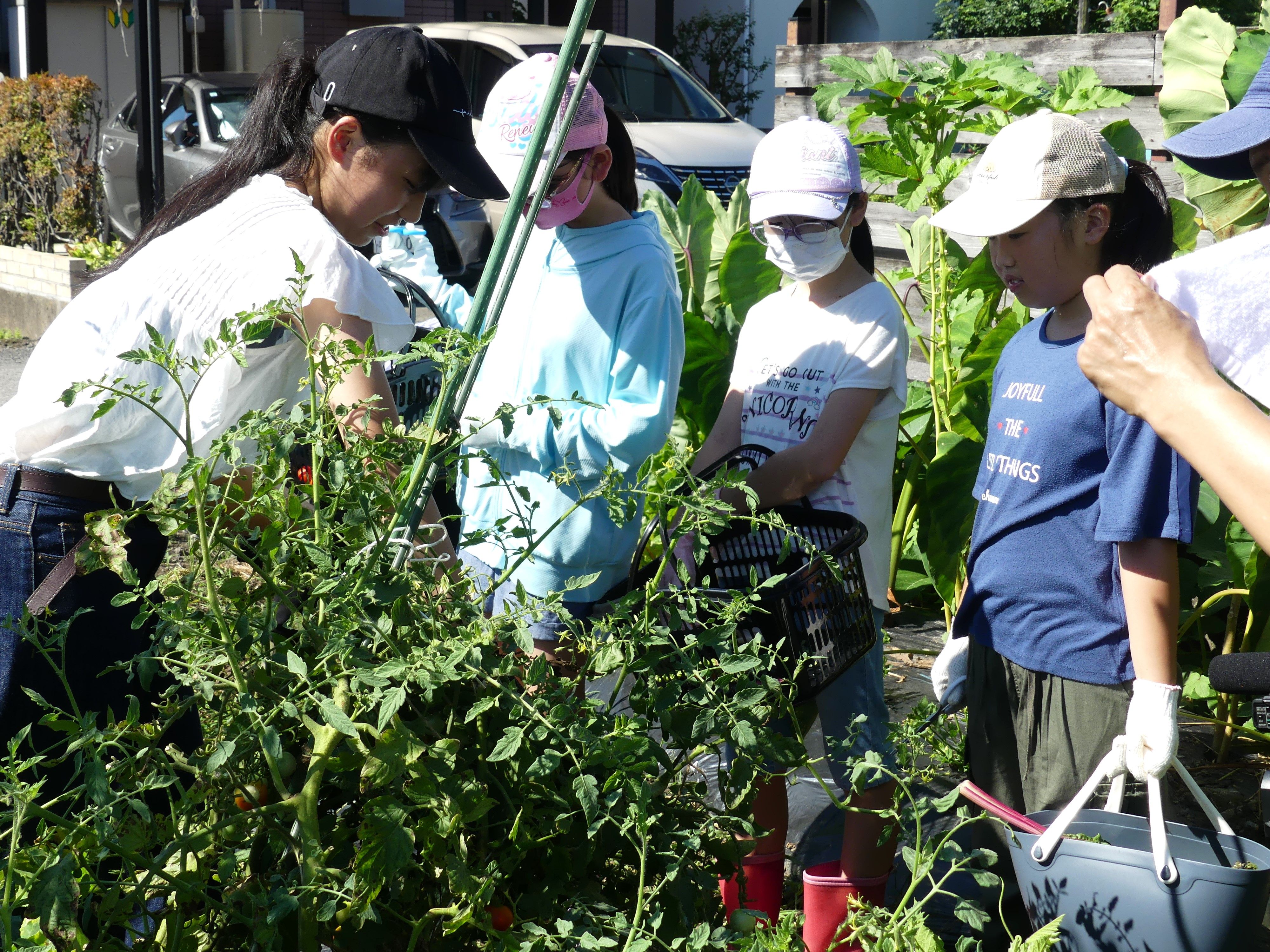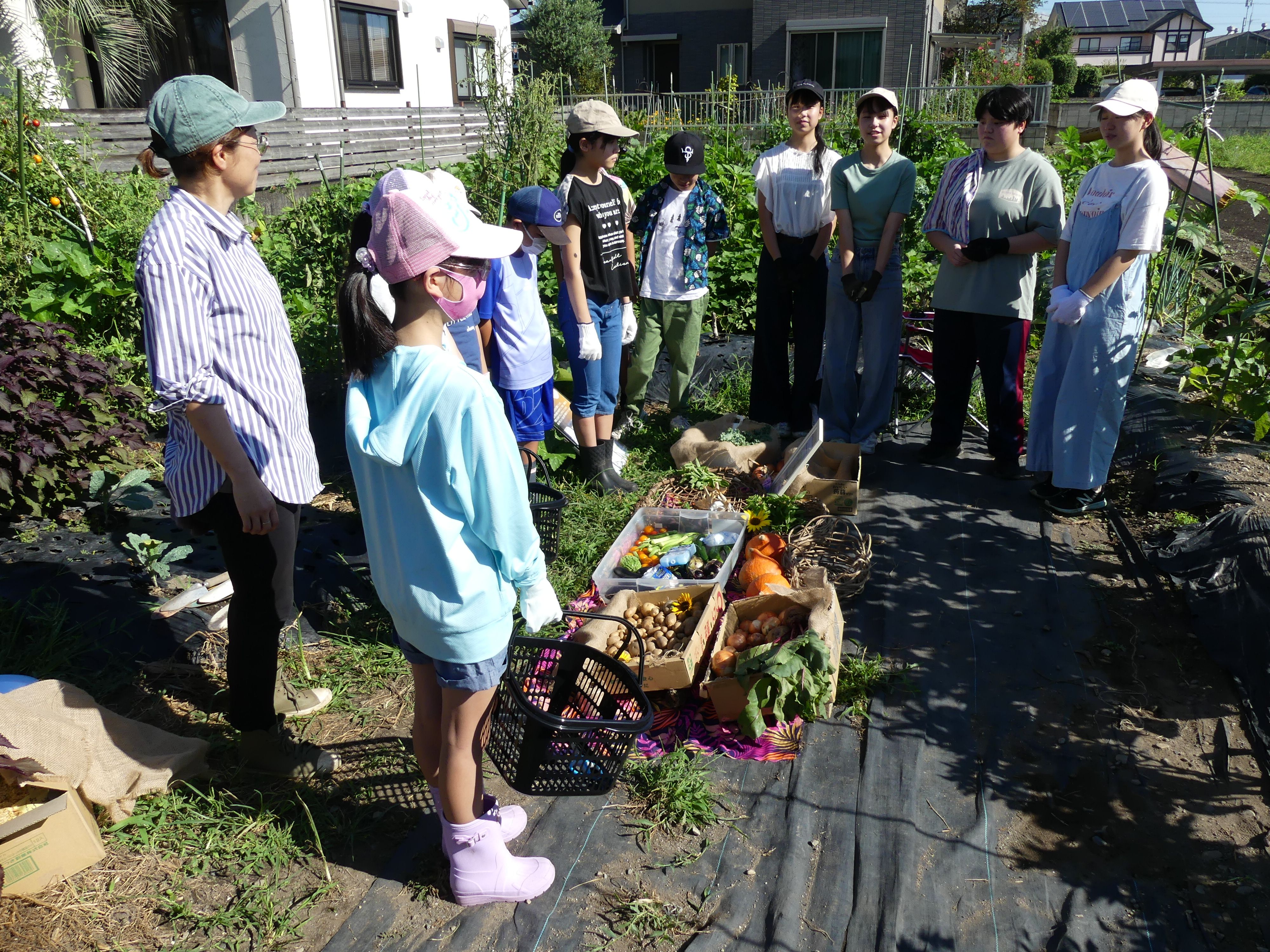 小学生にわかりやすく野菜の知識や収穫の仕方をレクチャーしています