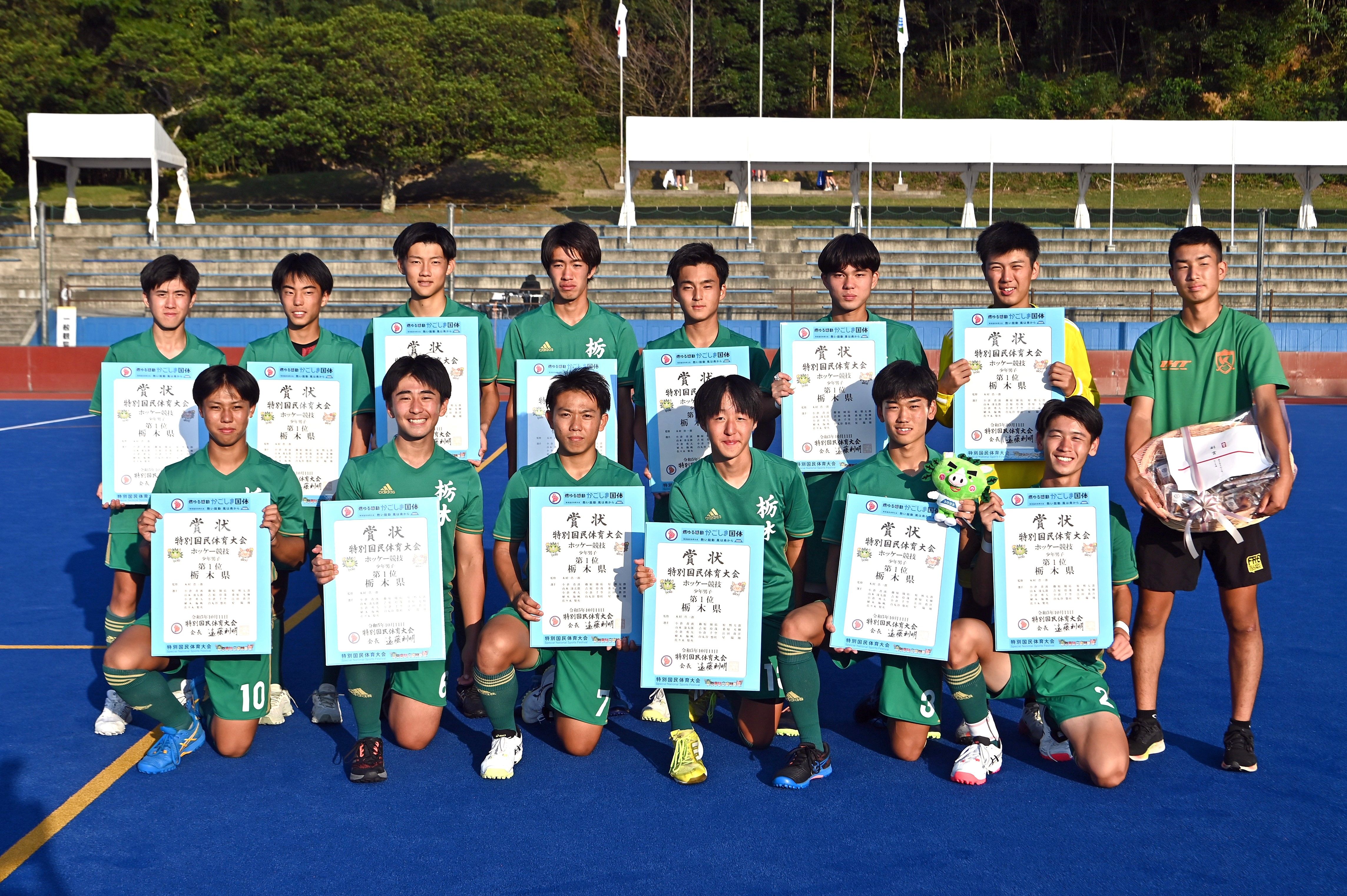 「かごしま国体」ホッケー少年男子の栃木県チーム。今市高校と今市工業高校の選手たちで構成されました
