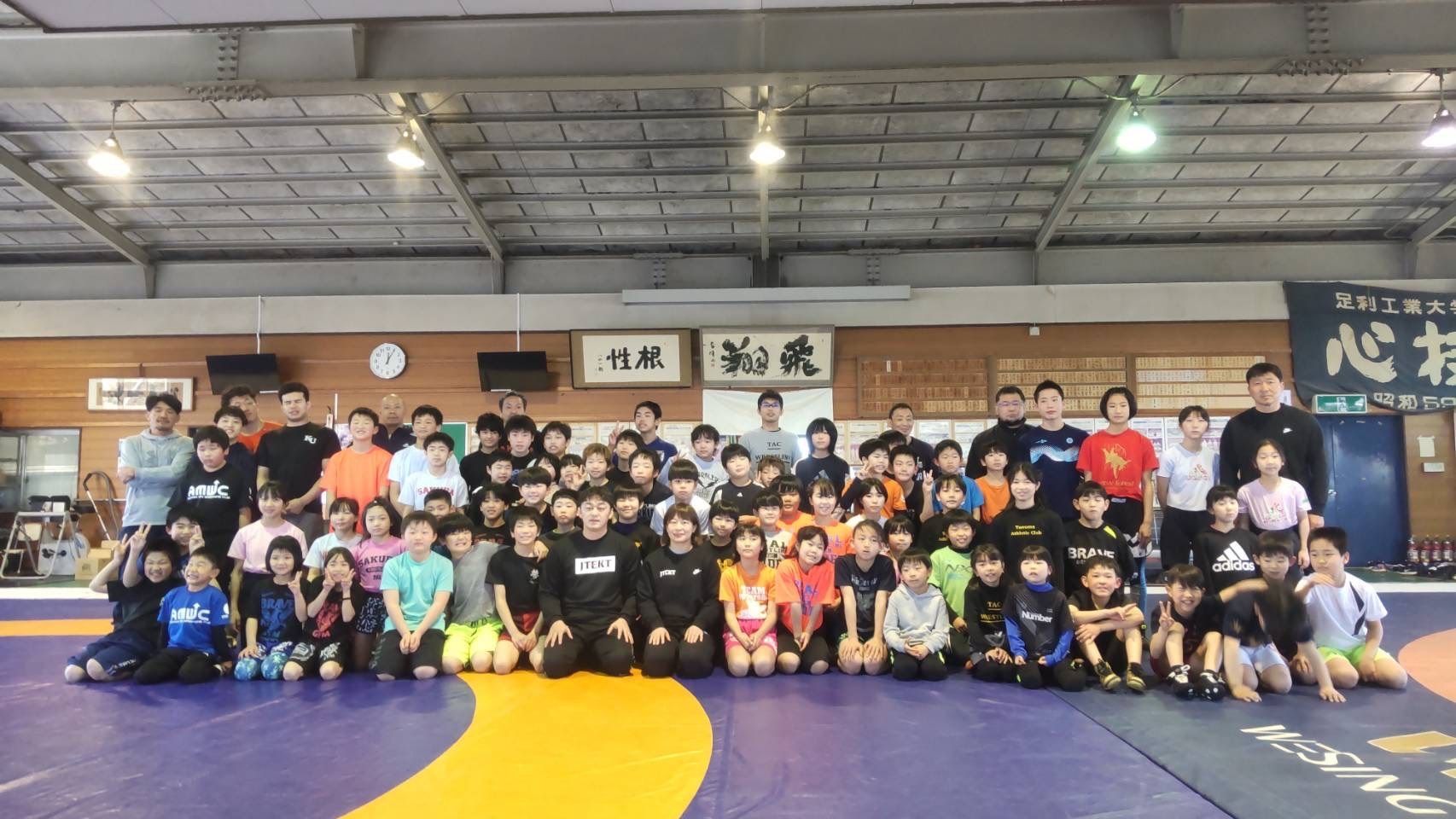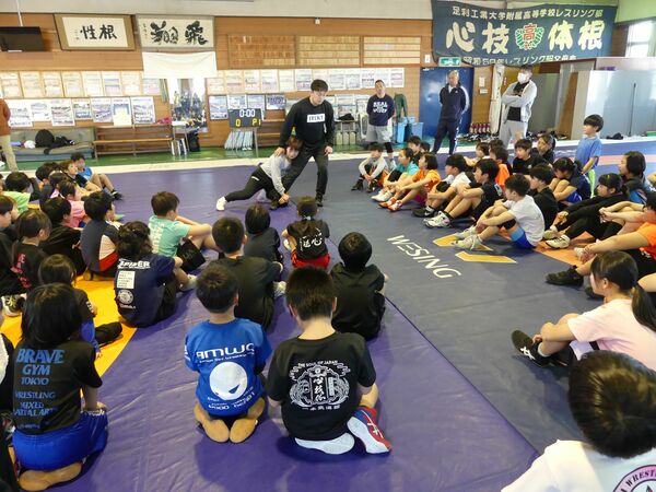 東京オリンピックのレスリング金メダリスト志土地 真優さん(中央)から実技を交えての特別レッスン